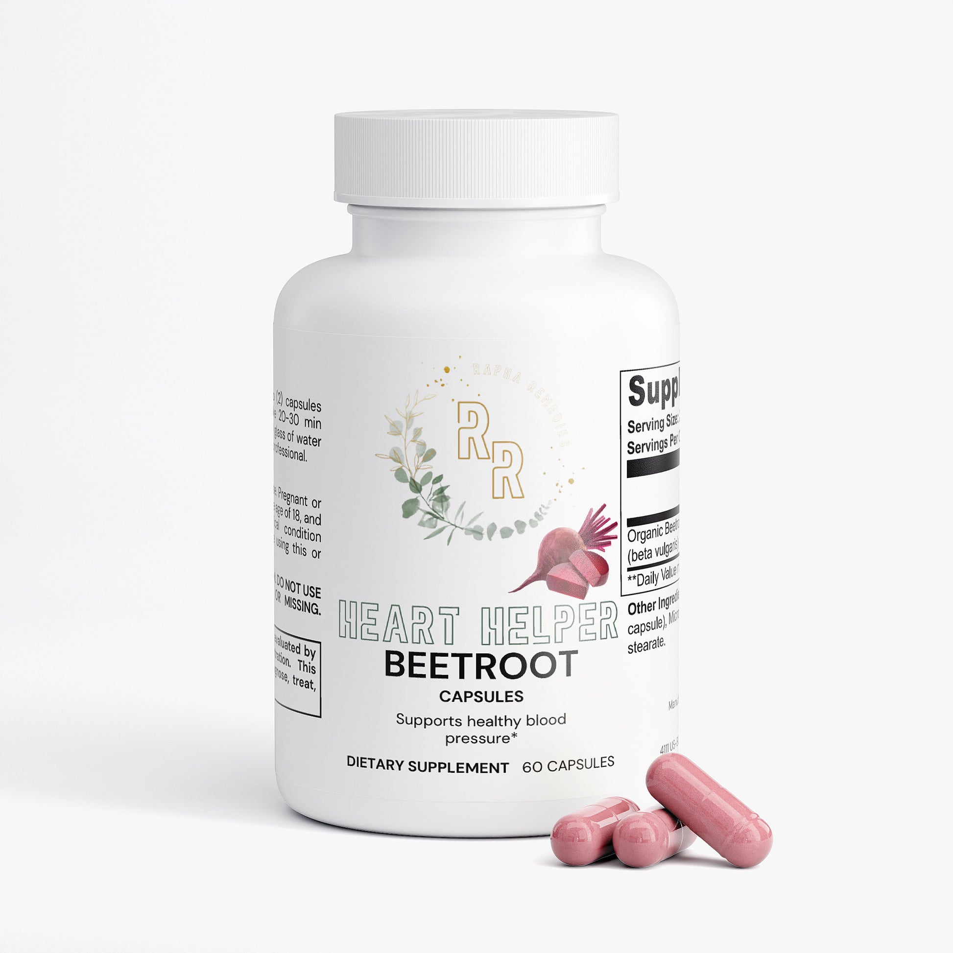 Ingredients: Organic Beetroot Powder (beta vulgaris), Hypromellose (vegetable capsule), Microcrystalline Cellulose, Magnesium Stearate.