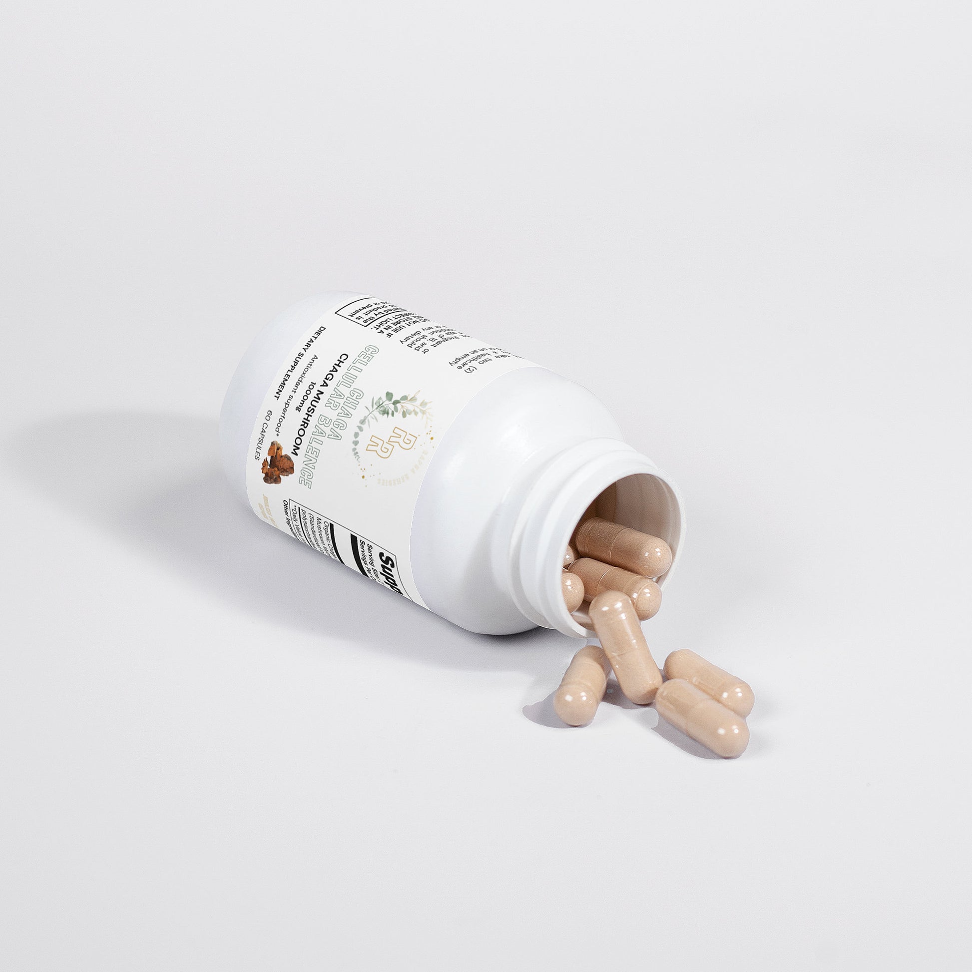 Ingredients: Organic Chaga (Inonotus obliquus) Mushroom Mycelium Powder (Standardized to 40% polysaccharides [400mg]), Organic capsule (pullulan, water), silica.