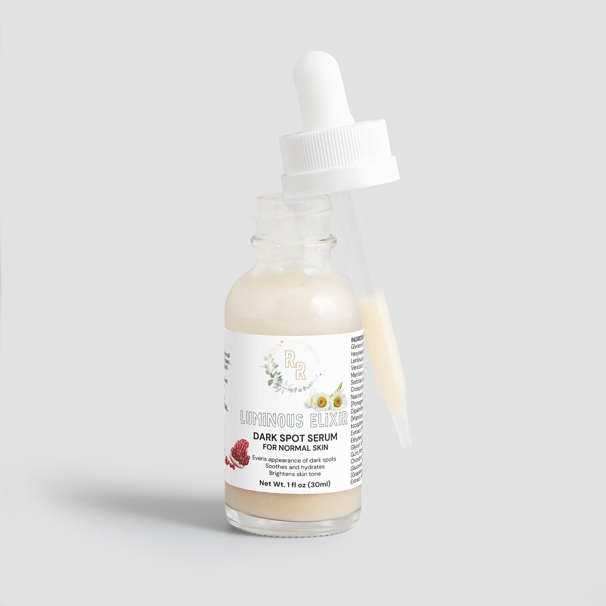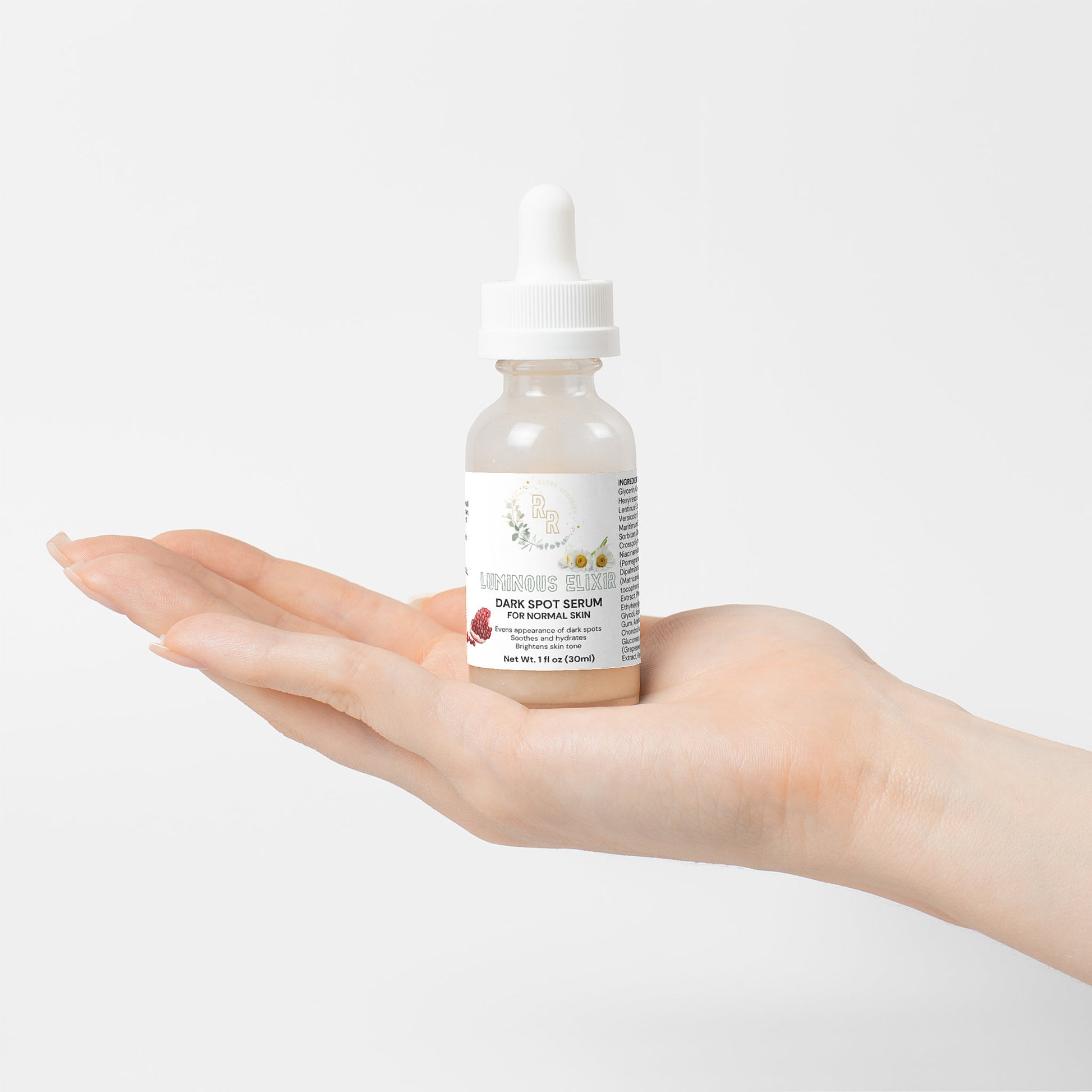 Introducing our Dark Spot Serum, a targeted elixir designed for radiant skin. Hydration sets the stage for targeted dark spot reduction. Our powerful extracts work together to brighten and even skin tone while providing soothing repair.