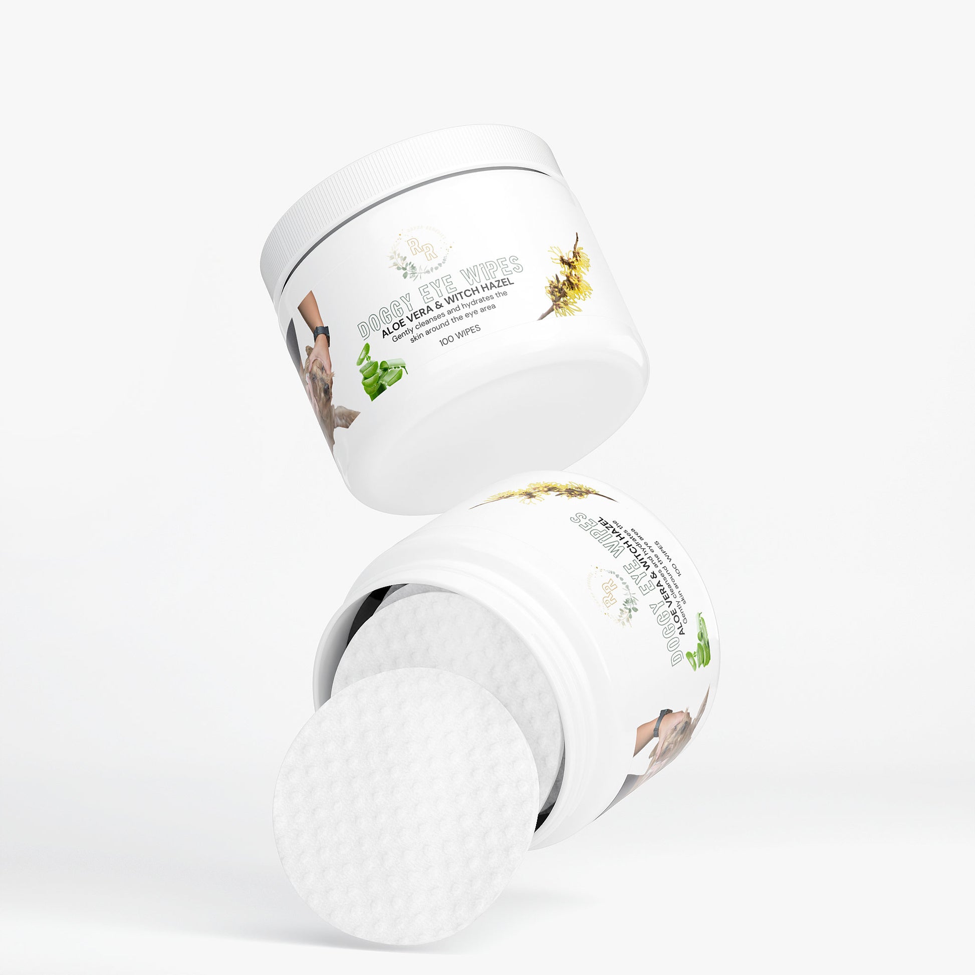 Our dog eye wipes make it easy to clean around your dog's eyes to remove tear stains and debris. These wipes come pre-moistened, ready to use. They contain 100% Natural Ingredients, including moisturizing agents such as Aloe Vera, and calming actives, such as Witch Hazel. While gently cleaning the area, the product will also control dryness and help eye area feel smoother.