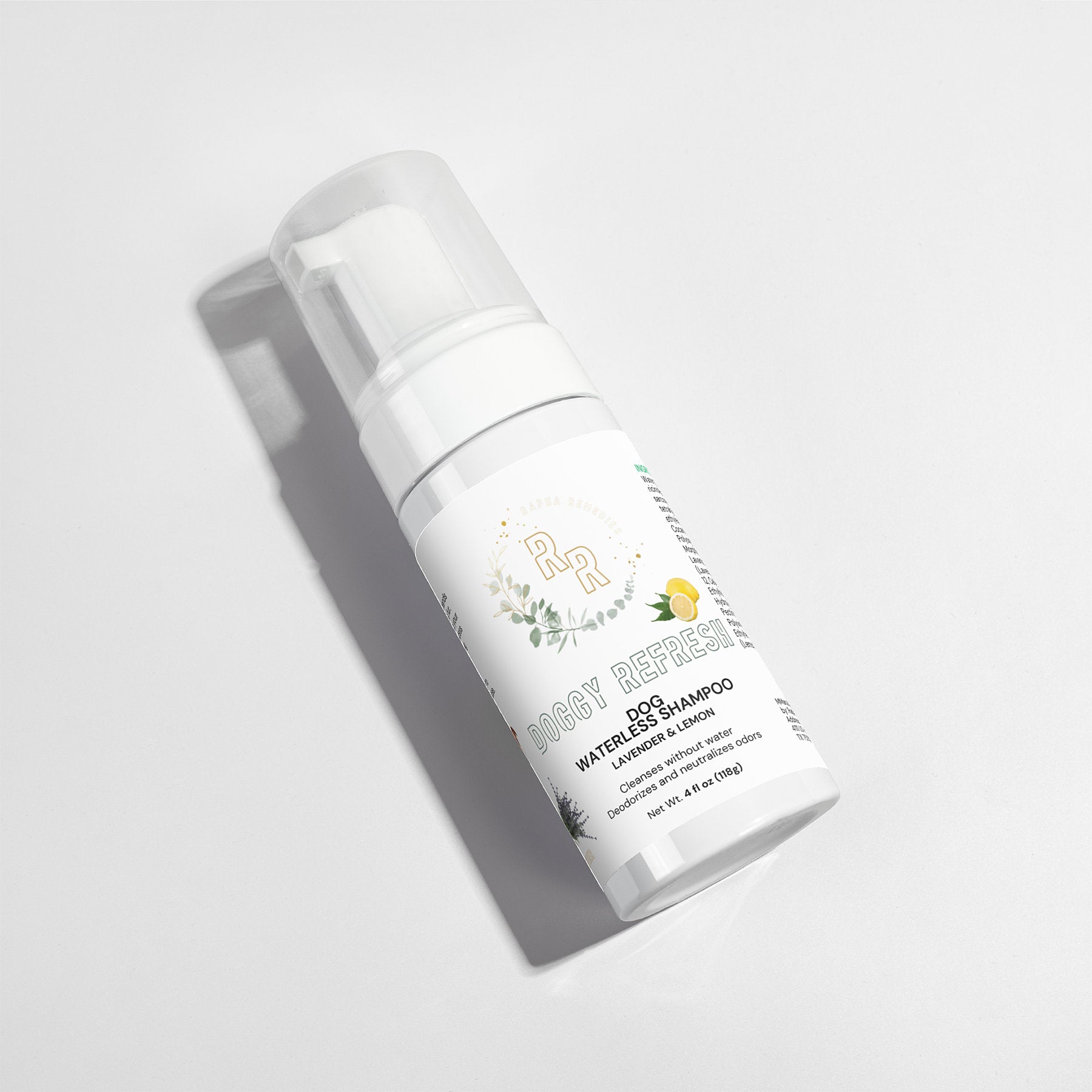 Our Waterless Shampoo is made with effective deodorizing agents that help control and neutralize unpleasant odors. It is naturally scented with Lavender and Lemon oils, that besides smelling great, help keep bugs away from your best friend.